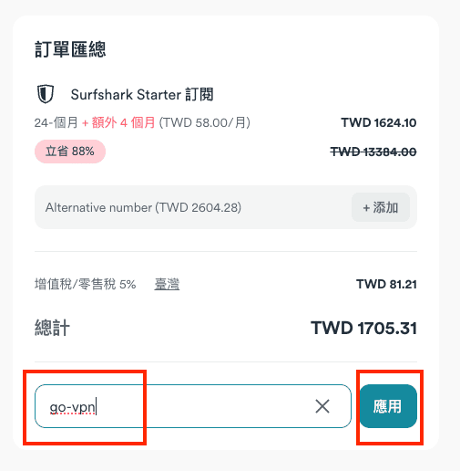 Surfshark 優惠碼輸入教學: