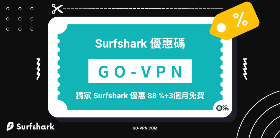 在找最新、保證有效的 Surfshark 優惠碼?為了幫助各位讀者省錢,只要使用優惠碼:GO-VPN 即可獲得 1.2 折 + 額外 3 個月免費,千萬別錯過本年的低價入手機會。